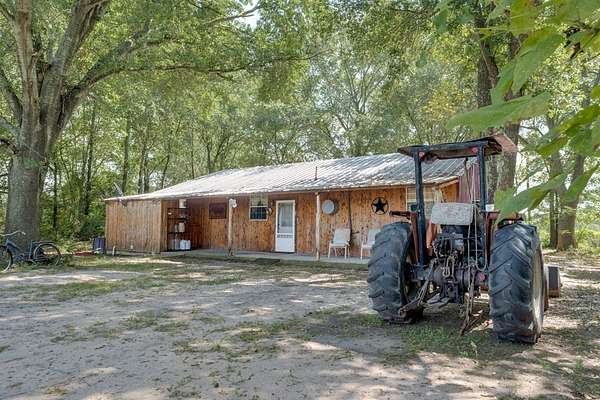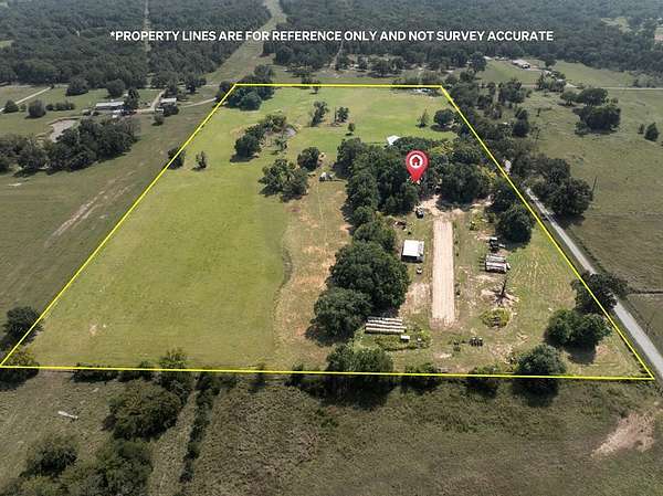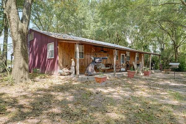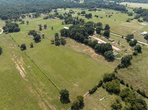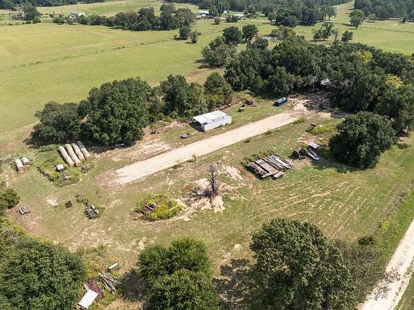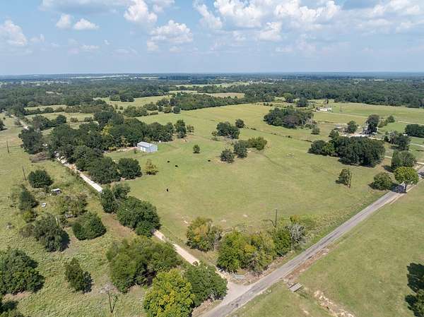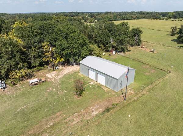Dreaming of country living? Wake up your dreams have come true!! Well maintained 2 bedroom 1 & half bath home tucked away in rural East Texas on almost 20 acres. Enter into large open living/dining space separated from kitchen by custom cedar bar. Built in solid wooden desk and cabinetry provide ample storage and counter space to stretch your culinary muscles. Spacious bedrooms sit on opposite ends of the home each with their own bathroom for convenience & privacy. Oversized primary bedroom has a walk-in closet. Outdoors relax on front or back porches which span the full length of the house. Look out over ample fenced and cross fenced improved pasture, garden plat, fruit trees, and a pond. 30x60 workshop has a concrete slab, 4 roll up doors, plus double doors for easy accessibility. Full electric. Multiple storage buildings and barn for all your tools and toys.
