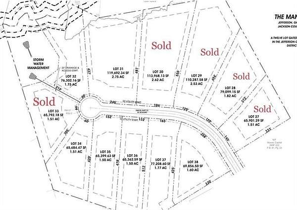 Last chance to own one of the few remaining coveted homesites in Jefferson's most prestigious neighborhood. In the heart of Jefferson is an unparalleled neighborhood second to none. The Manor is a luxury community hosting estate sized lots and exclusive quiet contentment. Hosting a large 1.75 acre lot off of a low-traffic, cul-de-sac street is the perfect backdrop for your dream home. This established community is one of the only gated subdivisions in the area and also boasts private paved streets adorned with lamp posts, mature trees for added privacy, and stunning custom homes. Within the coveted Jefferson City School District and located just outside of downtown Jefferson allows for quick access to local businesses and eateries. This central location also places you only 15 minutes to Athens and within 5 minutes to 1-85. Welcome to The Manor ... your forever home!