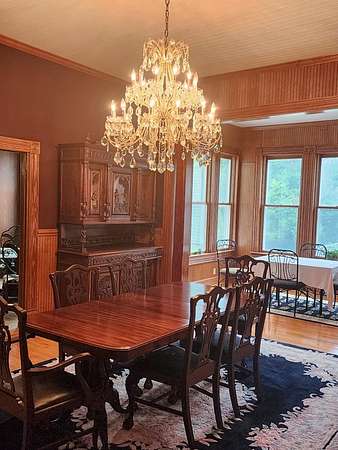 Step into a rare piece of history with this breathtaking 5060 sq ft home, originally built in 1888 featuring beautiful craftmanship sitting on 1.35 acres with an additional 3.5 acres that is fenced. Home has been lovingly maintained with lots of updates offering a perfect blend of old-world charm & contemporary convenience. Original hardwood floors along with ceramic tile can be found throughout along with ornate woodworking & several crystal chandeliers. The chef's kitchen consists of all updated appliances & custom cabinetry. Whether cooking a big family meal or entertaining for the evening, you have a choice of the formal dining room or the breakfast nook. On the other end of this spectacular home, you will find an office with built-in bookcases lining the walls. The bottom floor has 2 bedrooms/2 bathrooms with an additional 4 bedrooms/3 bathrooms located upstairs. This would be the perfect home place for a large family or as a local B&B. *Home is located in a flood zone* Call today to schedule a showing.