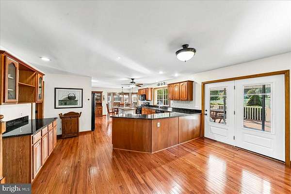 Custom elegance surrounds this large colonial home on a scenic 2 acre lot that embraces the beauty that Southern Chester County is known for. A large foyer, with gleaming hardwood floors, greets all who enter. Large living room, with hard wood floors and chair rail creates a quiet area to relax and unwind. The beautiful eat in kitchen is the central gathering place of the home! Generous wood cabinets are topped by gleaming granite counters while it features a walk-in bay window for scenic mealtime views of the large covered rear porch and yard. Generous sized custom island, panty, ceiling fan, ceramic backsplash and gleaming wood floors combine with a propane range for the serious chefs while a side run of cabinets is perfect for buffets or entertaining. Lovely new door opens to the covered rear porch-a perfect place for those summer meals or morning cups of coffee! Family room, with a stone propane fireplace and walk in bay window, provides that open floor plan which is so popular in 2025. First floor office and powder room complete the first floor. Generous sized primary bedroom features wood floors, ceiling fan and a walk-in closet. Large full bath has a jetted tub, with its own heater, stall shower and vanity with custom mirrors. Three additional bedrooms, a hall bath and a large laundry room with utility sink and cabinets complete the second floor. Stairs lead from one of the bedrooms to a large third floor multipurpose room with carpet and the charm of dormers-Wow! Walk in door leads to a large floored attic area for all of your storage needs. Finished basement, except for the ceiling, has been the setting of many gatherings and parties. New carpet in the recreation room overlooks a dry bar and a fireplace that features piped propane for your future log set. Pool table, set on a laminate floor, will provide hours of fun. Additional features are a 3-car garage, storage shed, garden shed, 75-gallon propane hot water heater, newly paved drive and an owned propane tank. Enjoy your beautiful back yard as you gather around the firepit and enjoy the star filled skys!