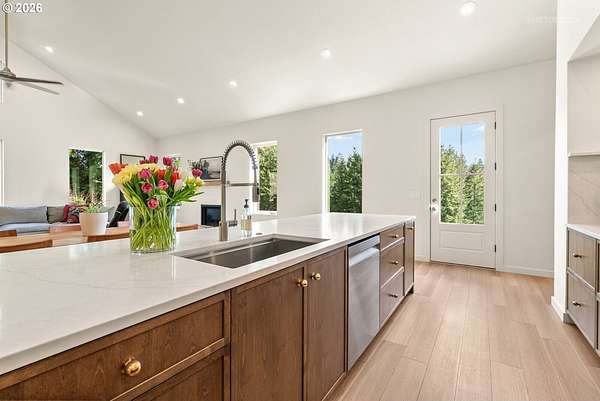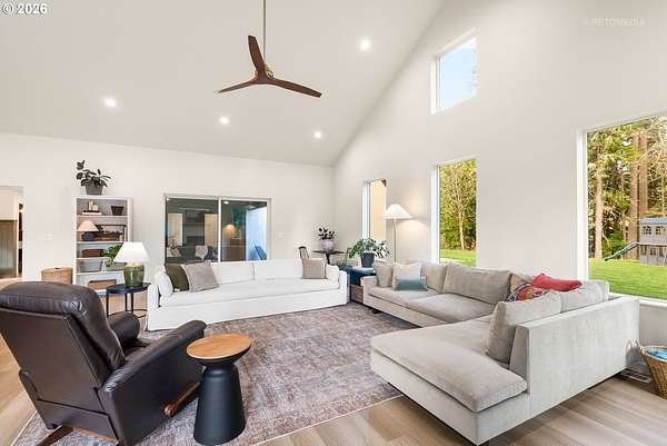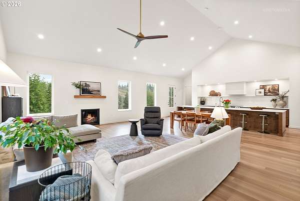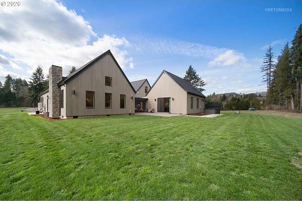 Set on 2 gorgeous acres overlooking the Lewis River, this newer 3,766 sq ft modern home feels like a private escape-yet you can walk to your favorite fishing spot and only 7 minute drive to the city center. From the moment you arrive, you'll feel it: this home is truly special. A stunning courtyard welcomes you in, leading to a spacious entry that beautifully connects the two wings of the home. Step into the living room and look up-breathtaking vaulted ceilings and an inviting great-room design create the perfect backdrop for everyday comfort and unforgettable entertaining. Gather at the long dining table, cozy up by the fireplace, or spill out to the covered patio with your favorite drink in hand. The kitchen is a showstopper with a generous quartz island, abundant cabinetry, and walk-in pantry. The layout is thoughtfully designed, offering two bedrooms set apart from the primary suite and fourth bedroom for privacy and flexibility. In the primary suite, wake up to natural light and tall ceilings, then slip out to the hot tub for a peaceful start (or end) to your day. The primary closet is impressively spacious, and the spa-inspired bath delivers the wow factor-double sinks, a private commode, soaking tub, and a gorgeous tile shower. A well-appointed laundry room with counter space and cabinetry is ready for real life, and the bonus room invites big dreams-gym, theater, guest space, or even a 5th bedroom?? Add the upstairs office area for working from home, and the lifestyle here is complete. Outside, soak in the river view from the lawn, garden to your heart's content, build your dream shop, or relax on the patio and enjoy the sun-this home offers space, serenity, and a lifestyle you'll want to hold onto that backs up to State Land!