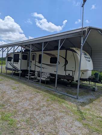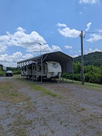 Ultimate Weekend Getaway or Outdoorsman's Dream! Just over an hour from Nashville and around the corner from Roaring River Park, this 4-acre private retreat is ready for your next adventure! Previously two 2-acre parcels, the land has been combined into one expansive lot--fully improved and full of possibilities. The property features two oversized metal carports, each with RV hookups including power, water, and septic. A Jayco RV with three slide-outs conveys with the sale and includes a new queen mattress for a better night's sleep. Whether you're hosting guests or parking your own setup, everything is ready to go--even high-speed internet is available at the property. The current owner added a private shed with a window air conditioning unit offering a cozy and secluded space for added comfort. The bathhouse now has electricity and water plumbed to it while the little storage building features electricity. The recreation area is flat and cleared, with space to grill, gather around the firepit, or enjoy open-air relaxation. But the best part? The property backs up to Corps of Engineers land along the riverfront--with a 4-foot cleared walking path directly to the water, already in place! Fish, swim, or sit by the shoreline--all just steps from your door. If you're seeking peace, privacy, and a move-in-ready river escape, this one checks every box. No HOA, no restrictions on fun--just freedom and fresh air. Turnkey, private, and perfectly placed--just 1 hour and 15 minutes from Nashville!