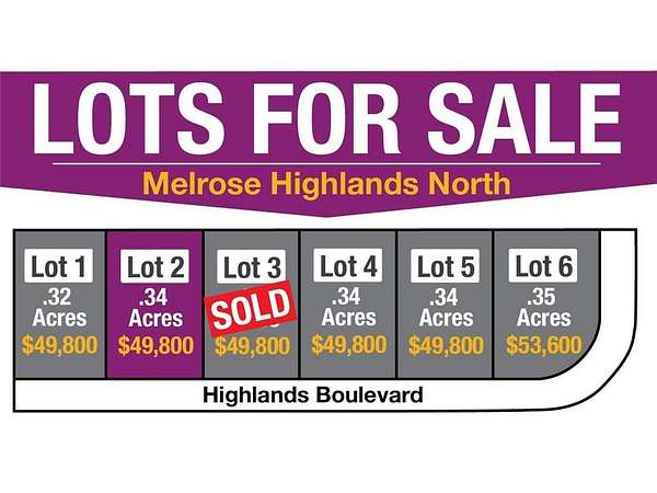 Est $383/moExciting new lots available in the City of Melrose! Build your dream home on a spacious .34 acre lot in a popular neighborhood with city utilities. Six total lots available; need more space... buy the adjacent lot. No builder restrictions; choose the builder you want! Located close to schools, parks and shopping. Don't miss this opportunity to become part of this wonderful community!