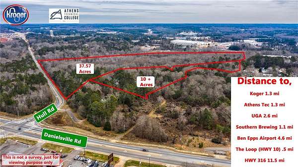 Est $39,702/moThis property s a great opportunity! Offered at $ 125,000 per acre. Property is prime location currently in conservation use, zoned RM1 residential mixed density use which allows single family, duplex, multifamily, schools, nursing homes or limited commercial with special use approval. This property has beautiful old growth hardwoods and a year round natural springs. Sewer and public water are available on the property. It is located conveniently to Athens Tech, The New Kroger Marketplace/Super center, and just minutes away from the UGA campus and downtown. This property shall be sold together with 0 Danielsville Road .