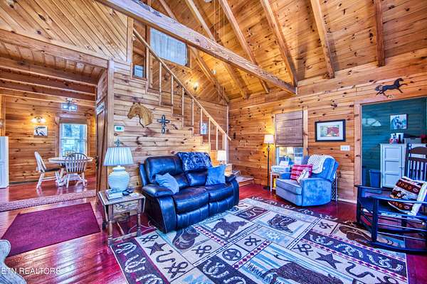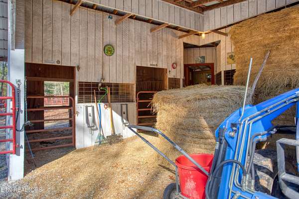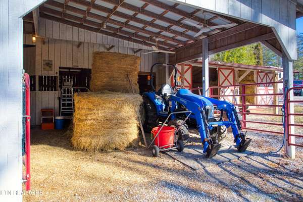 TRUE Turn Key Equestrian Property with 3.7 ACRES. CIRCULAR driveway with plenty of parking for trailers without blocking the driveway. Flat workspace for horses with excellent footing. House & Barn wired for one plug generator hook-up. New Generator included in this sale. Secure fenced back & front yard for pets. Security system, cameras installed. Ride off your property & in 1 minute be on the Horse trail that takes you directly into the BIG SOUTH FORK NATIONAL PARK with 220 miles of dedicated horse trails. 4 stall BARN plus Tack Room plus hay storage for about 600 bales of HAY. STOCKED POND, Fenced turn out & Fenced Pasture. Inside is ALL Hardwood flooring. Vaulted living room ceiling, upstairs LOFT with FULL Bathroom. 1/2 Wrap around decking. Screened in Sun porch in the front. WHOLE home dehumidifier. ENCAPSULATED CRAWL SPACE. 2 year old VERMONT CASTING Propane STOVE/FIREPLACE in living room. New Fuse Box in Home. 8 to 10 miles of community trails for daily use. HIGH SPEED internet available.