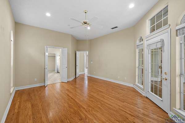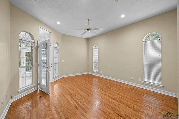 - Bookcases, Ceiling Fan, Hardwood Floors, Wood Shutters