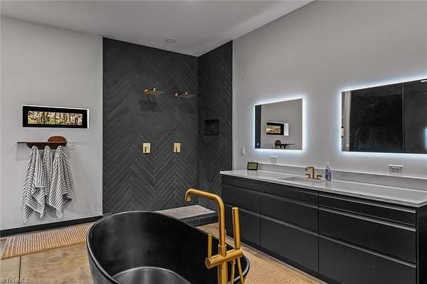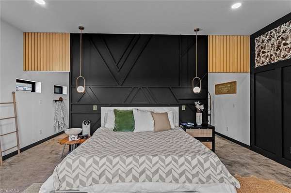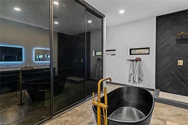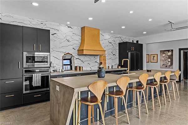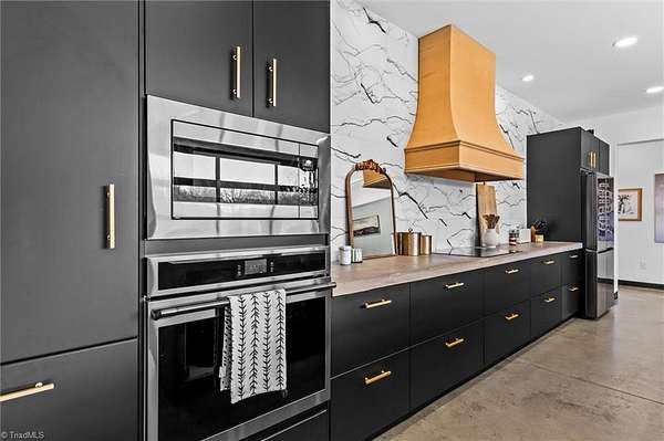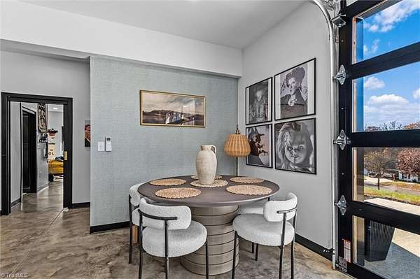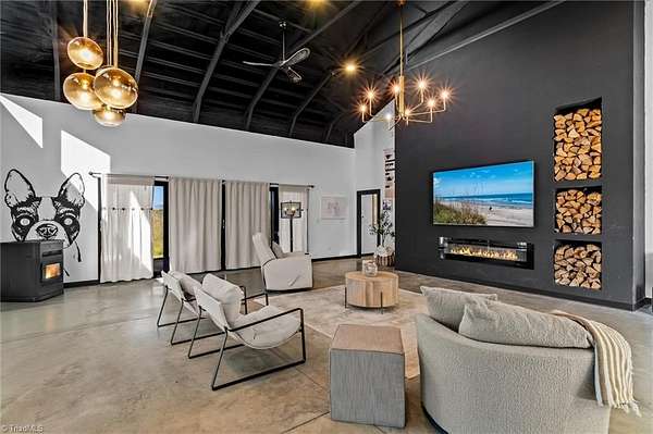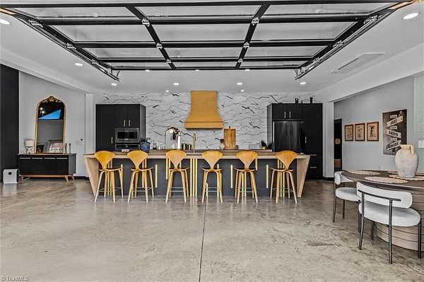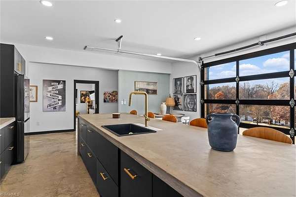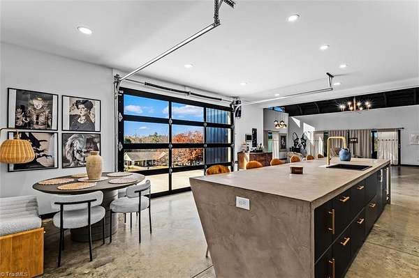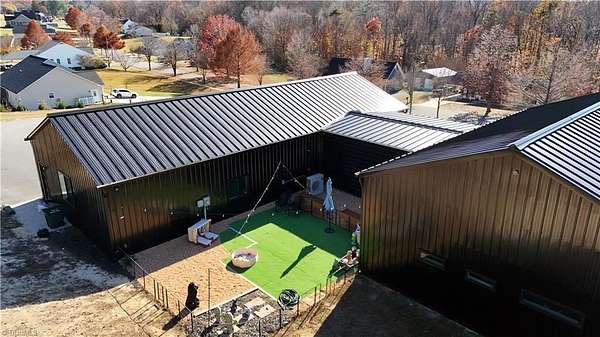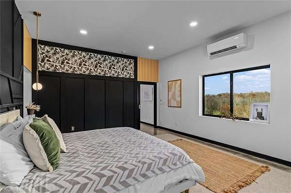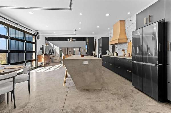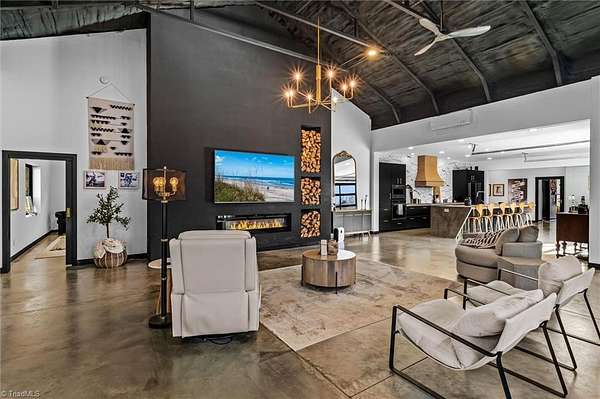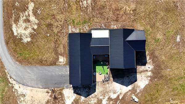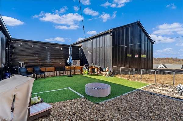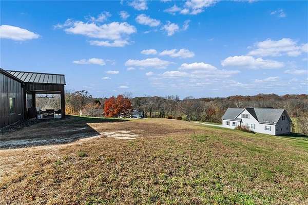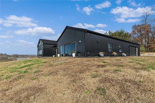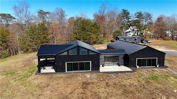 Experience refined modern living in this luxury 4-bed 3-bath custom built barndominium. The home features a stunning great room with soaring ceilings and an elegant covered outdoor dining area on a spacious lot. The gourmet kitchen includes an oversized island, matte-black cabinetry and designer finishes. Enjoy elegance when you enter the primary suite boasting custom closets and a spa-style bath with a black soaking tub. Each additional bedroom offers its own style with exceptional modern touches. Polished concrete floors, expansive windows and custom details elevate every corner of this home. The garage space provides excellent flex space for storage, vehicles, hobbies or future conversion options. Surrounded by wide open views, the property provides an exceptional blend of luxury and modern sophistication. Don't miss your opportunity to experience this bright upscale feel just minutes from Downtown Mount Airy!