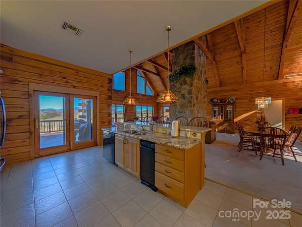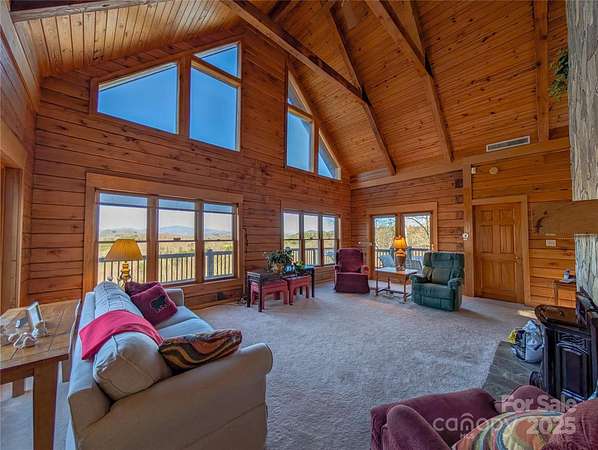 Best Buy in Area! Fabulous Views of distant mountain ranges greet you from inside and outside this home, plus two separate decks for outside relaxing & entertaining will be enjoyed by all! This Quality 3BR/2.5 BA Log Home on 2.9 acres has spacious Great Room w/massive native stone fireplace and chef's kitchen that is perfect for living and entertaining! Privacy with the split floor plan has primary bedroom w/walk-in closet plus bath w/double vanities, shower + privacy room. Two additioanl bedrooms and bath + laundry on main level. Lower level fits everyone's dream w/ spacious den/rec room w/central native stone fireplace, powder room, large office plus sewing room w/built-ins. The garage has workbench and 15' garage door plus access to separate storage space for all your needs. Two separate furnaces (heat/air) plus generator and freezer included. It's Move-In Realy with many updates already completed! SPECTACULAR VIEWS! QUALITY SPACIOUS HOME! LOW PRICE OF $725,000! CALL before it's too late! 1