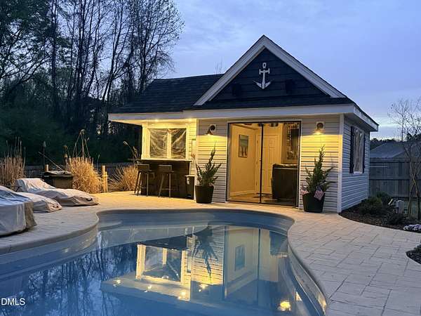 An Entertainer's Dream! Enjoy Effortless First-Floor Living In A Private Cul-De-Sac Setting, Complete With Your Own Backyard Pool Oasis On Nearly Two Acres. Relax Or Entertain Around the In-Ground Fiberglass Saltwater Pool Featuring A Stunning Waterfall, Tanning Deck And Pool House. The Screened Porch Overlooks The Pool And A Beautifully Landscaped, And Fully Fenced Backyard That Offers Both Privacy And Functionality. Enjoy A Spacious Low Maintenance Deck And Private Hot Tub Nook. Elegant Landscape Lighting Extends Your Hours Of Enjoyment. The Property Line Extends Into The Wooded Area For Ensured Seclusion. Inside, No Expense Has Been Spared On High-End Finishes And Custom Touches Throughout. Highlights Include Tray And Vaulted Ceilings, Detailed Millwork, And Designer Elements Ranging From Exquisite Tile Work And Custom Finished Cabinetry To Built-In Closets And Heated Mirrors--All Thoughtfully Curated For Both Comfort And Style. The Home Lives Like A Four-Bedroom, With The Upstairs Functioning As Its Own Private Suite. This Versatile Space Includes A Full Bath, A Spacious Recreation Room, And An Additional Flex Area--Perfect For Guests, A Home Office, Or Hobbies. Ample Walk-In Attic Storage Completes The Upper Level. A Three-Car Garage And Nearly Two Acres Of Land Provide Exceptional Space, Convenience, And Endless Possibilities. Enjoy The Charm Of Angier With Convenient Access To Fuquay-Varina, Lillington, Campbell University, And The Greater Raleigh Area. The Nearby NC 55 Bypass Is Already Underway, Promising Even Easier Commuting In The Near Future. Added Peace Of Mind Comes With A Builder Warranty Covering Select Items For Up To 10 Years.