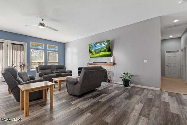 Tucked into the Dayton Valley Ranchettes on 5 usable acres, this 2003 built home offers 4 beds, 2 baths, 2010 sq. ft. and the kind of outdoor setting buyers want: Mature trees and established landscaping for shade and privacy, plus three frost-free hose bibs/hydrants for year-round water to gardens, turnouts, or future horse pens. Inside, high ceilings throughout amplify the natural light and make the single-level layout feel open and airy. A standout insulated 37'X50' steel shop (on slab with power/lighting) is ideal for RV/boat storage, car lifts or a serious workshop; add the attached garage, private well and septic, and wide-open views and you've got a ready-to-enjoy ranchette with room to grow. Plenty of level ground for additional outbuildings or arenas.