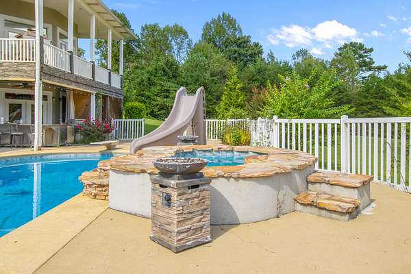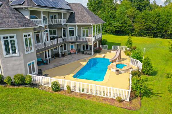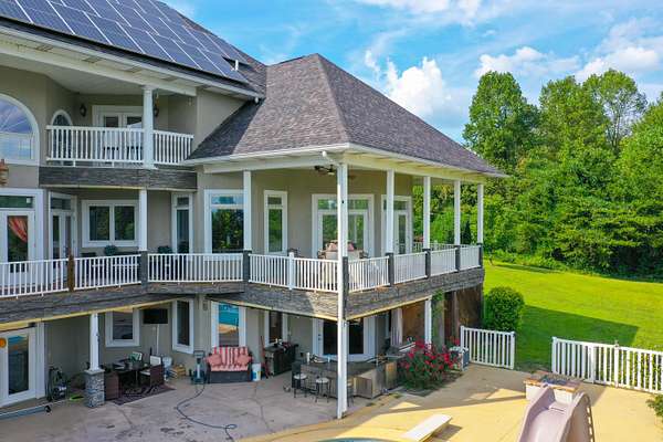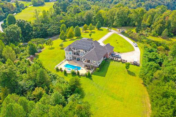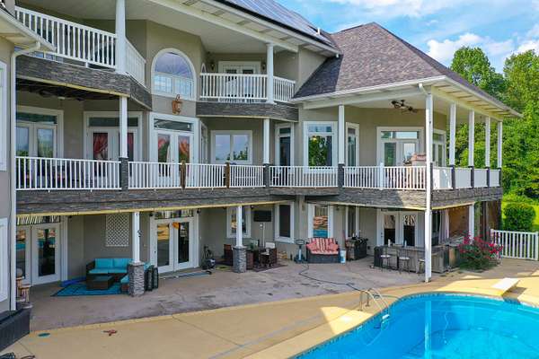 Experience the perfect fusion of elegance, privacy, and outdoor adventure with this extraordinary three-story estate, set on 28.65 surveyed acres and backing directly to the Cumberland River. Designed to impress at every turn, this property offers the ideal blend of high-end amenities and breathtaking natural beauty. Step inside to discover a chef's dream kitchen, outfitted with premium appliances and expansive prep space-perfect for entertaining or culinary creativity. Enjoy movie nights in your private theater, host unforgettable gatherings at the full bar, and maintain your lifestyle in the private gym. Outside, the resort-style features continue: a heated saltwater pool with Jacuzzi, a gas fireplace, and a gas fire pit create an outdoor oasis for every season. The outdoor kitchen makes entertaining seamless, while expansive decks and balconies showcase the stunning river views. Sustainable living meets modern luxury with owned solar panels, while a three-car garage provides ample storage for vehicles, equipment, and toys. Whether you're searching for a private retreat, a family compound, or a statement property to entertain and impress, this Cumberland River estate delivers unmatched lifestyle and value.