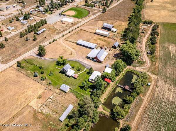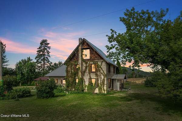 1906 Historic Homestead with Heart & Heritage - Step back in time and experience the enduring charm of this circa 1906 homestead, a fourth-generation estate steeped in history, heritage, and promise. Offered SOLD AS IS, this once-in-a-lifetime property has been lovingly held in the same family's care for over a century-a testament to the resilience and spirit of the early North Idaho pioneer settlers. At the heart of the estate stands a custom-poured concrete farmhouse, an architectural rarity of its era, thoughtfully designed in a timeless English cottage style. Climbing ivy gently embraces the tall concrete walls, while handcrafted wood shutters and rustic cedar shake accents speak to a bygone era of craftsmanship. Spanning 3,394 square feet across three finished levels plus an unfinished basement, the home offers four bedrooms, two bathrooms, and main-floor living-all graced with vintage charm and warm, inviting spaces. Inside, a spacious living room, functional cozy kitchen, walk-in pantry/laundry room, and private office off the front porch provide a nostalgic layout ready for restoration or immediate enjoyment. This home is an ideal canvas for someone seeking a character-filled country retreat or a meaningful restoration project with historic merit. Surrounding the residence is a sprawling 132+/- acres of level, fully fenced farmland, presenting an extraordinary opportunity for ranching, equestrian pursuits, agriculture, or future development. The land is subdividable and enriched with two picturesque ponds, Blanchard Creek frontage totaling 2,788 feet, irrigation rights, and active hay production. The property has been surveyed and recorded, comprising four separate land parcels one 73.12-acre tract, three additional parcels, and two shared-interest lake parcels (7% & 11%). With panoramic views of Mount Spokane and Mount Hoodoo, the setting is both tranquil and breathtaking. An additional 14 outbuildings dot the landscape, including barns, garages, a machine shop, loafing shed, hay barns, and a well house, offering flexible infrastructure for agricultural operations, events, or agritourism ventures. And with no CCRs or HOAs, your vision can become reality unrestricted. Whether you're seeking a working farm, legacy investment, or generational homestead, this remarkable property is a rare convergence of North Idaho history, architectural significance, and boundless potential. Eligible for inclusion on the National Historic Register, it represents a unique opportunity to preserve a tangible piece of Idaho's rural heritage. Conveniently located adjacent to Stoneridge Resort and close to Blanchard Lake, Lake Sans Souci, Mount Spokane, and Hoodoo Mountain. Easy access to Highway 41 puts you just 35 miles from Coeur d'Alene, 40 miles from Sandpoint, and 17 miles from Priest River, close enough for convenience, yet far enough to enjoy the peaceful rhythm of country living. Your next chapter begins here. Own a legacy. Restore a treasure. Live the story.