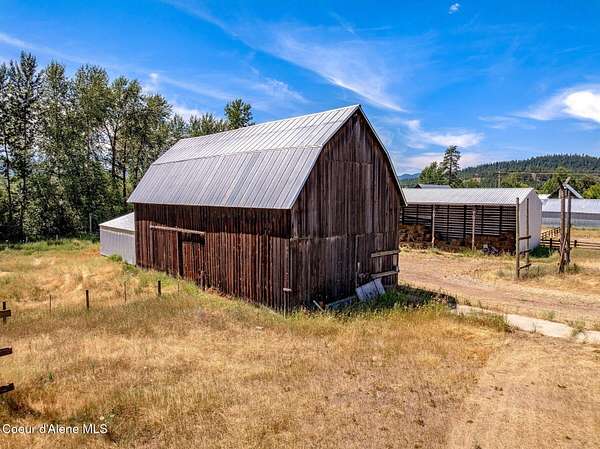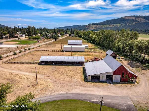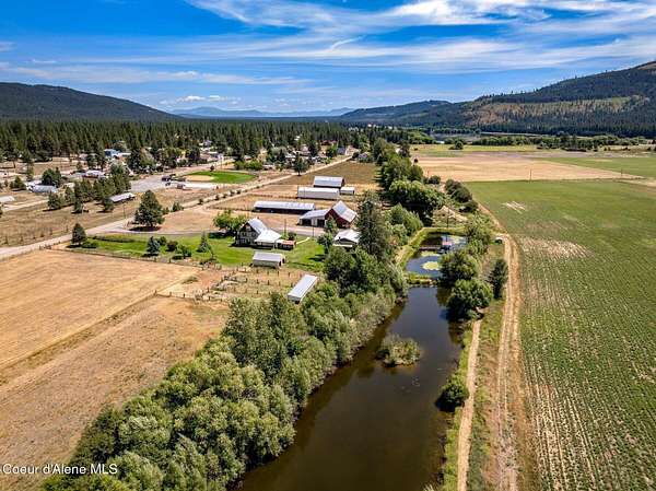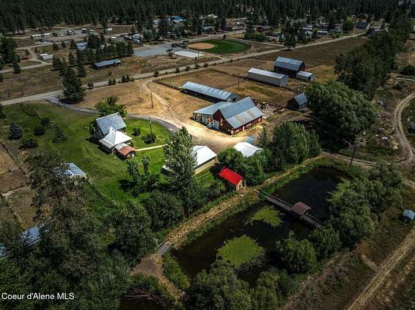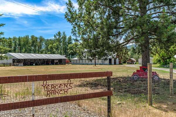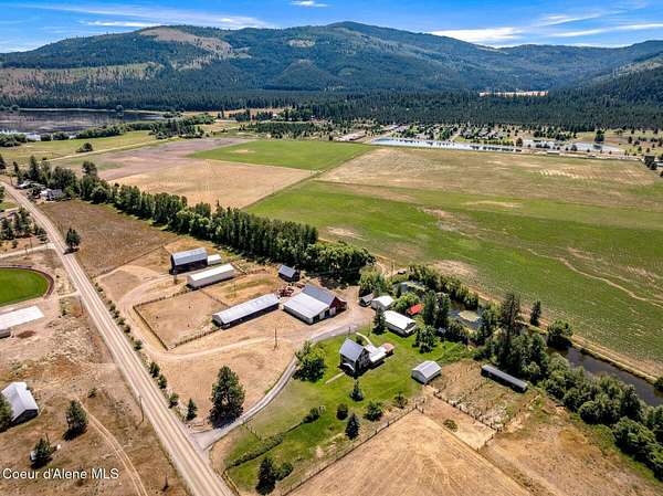 Step back in time and experience the enduring charm of this circa 1906 fourth-generation homestead-an estate defined by history, heritage, and remarkable potential. Lovingly held by the same family for more than a century, this rare North Idaho property stands as a testament to early pioneer resilience and craftsmanship. While the home will require thoughtful TLC and updating, it is comfortably livable as you remodel-allowing you to restore at your pace while enjoying the land and lifestyle it offers. At the heart of the estate is a custom-poured concrete farmhouse-an architectural rarity for its era-designed in a timeless English cottage style. Climbing ivy softens the tall concrete walls, complemented by handcrafted wood shutters and rustic cedar shake accents that reflect the workmanship of a bygone generation. Encompassing 3,394 square feet across three finished levels plus an unfinished basement, the residence offers four bedrooms, two bathrooms, and convenient main- -floor living. Inside, you'll find a spacious living room, functional kitchen, walk-in pantry/laundry room, and a private office just off the front porch. The layout is practical and welcoming, making it ideal not only as a primary residence during renovation, but also as housing for ranch or farm employees. Additionally, the home presents an exceptional opportunity for a VRBO or Airbnb, capitalizing on the property's historic character, acreage, and proximity to year-round recreation. Restore a barn or two for beautiful venues. Surrounding the residence are 132+/- acres of level, fully fenced farmlandan extraordinary offering suited for ranching, equestrian pursuits, agriculture, or future development. The acreage is subdividable and includes two scenic ponds, approximately 2,788 feet of Blanchard Creek frontage, irrigation rights, and active hay production. The property has been surveyed and recorded into four parcels: one 73.12-acre tract, three additional parcels, and two shared-interest lake parcels (7% and 11%). The setting captures panoramic views of Mount Spokane and Hoodoo Mountain, with expansive skies and pastoral serenity in every direction. Fourteen outbuildingsincluding barns, garages, a machine shop, loafing shed, hay barns, and a well houseprovide substantial infrastructure for agricultural operations, equipment storage, livestock, events, or agritourism ventures. With no CCRs or HOAs, your vision remains unrestricted. Ideally located adjacent to Stoneridge Resort and near Blanchard Lake, Lake Sans Souci, Mount Spokane, and Hoodoo Mountain, the property offers four-season recreation just minutes away. Easy access to Highway 41 places you approximately 35 miles from Coeur d'Alene, 40 miles from Sandpoint, and 17 miles from Priest Riverbalancing privacy with convenience. Whether envisioned as a working farm, income-producing retreat, employee housing hub, or generational legacy estate, this property offers structural substance, historic provenance, and significant upside. Restore its character, modernize its systems, and steward a meaningful piece of North Idaho's rural heritage into its next century.