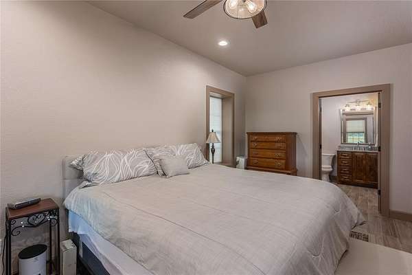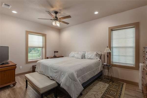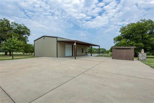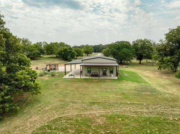 Est $3,754/moAlmost new barndominium on a little more than eight acres. Half shop and half living quarters with spray foam insulation. Several large, mature Pecan trees across the property. Lots of concrete parking and driveway with a carport and large back porch. Just outside the city limits with a water well. The utility room is in a closet that will accommodate a stackable washer and dryer. This is perfect for someone who wants to build their home while living on the property or subdivide for multi-generational.