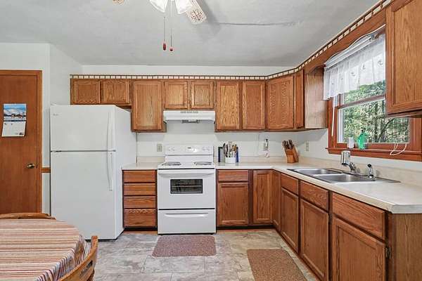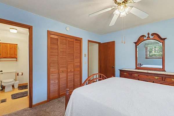 - Ceiling Fan(s), Kitchen/Dining Room, Main Level Living, Primary On Main Level, Primary W/Ensuite, Split Bedroom