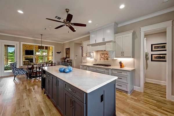Situated in a quiet, gated community near Hwy 75, TMC Hospital, and shopping, this exceptional one-story home offers refined craftsmanship, energy-efficient construction, and remarkable versatility. Solid oak hand-scraped wood floors, custom cabinetry, and natural stone surfaces elevate the home, with quartz in the office area and quartzite throughout. Additional features include foam insulation, tankless water heater, high-impact shingles, double-pane windows, WiFi lighting, central vacuum, ceiling fans throughout, and monitored alarm system for both the home and shop.
