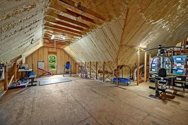 Upstairs, the 1,000+- sq ft walk-up bonus room is unfinished but fully decked with electricity run, plumbing stubs, and copper lines installed for future air conditioning.