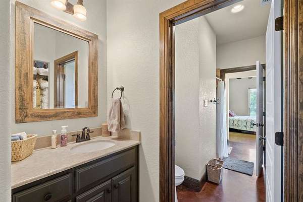 From Interstate 20 take 1189 South to Brock; in Brock turn onto Grindstone Road then left onto Lazy Bend Rd; follow Lazy Bend to Dude Ln then left on Dude Ln; follow Dude Ln to the entry gate at River Dr; follow River Dr to Bluff Ln; right on W Bluff Ln; property on the immediate right