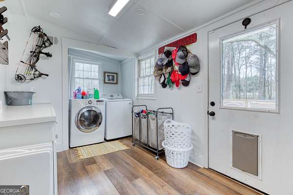 Welcome to 2100 Bostwick Highway, where peaceful country living meets the convenience of town. Situated on 2.03 beautiful acres just outside of Madison, this property offers privacy and space while being only minutes from Historic Downtown Madison with its charming shops, local dining, and year-round community events. This well-maintained home features 3 bedrooms and 2 full bathrooms, with hardwood floors throughout the main living areas and comfortable carpet in the bedrooms. The spacious country kitchen is designed for both functionality and charm, offering granite countertops and ample space for a small dining table - perfect for casual meals and morning coffee. The large living room provides plenty of space to entertain guests or relax with family. A dedicated laundry room includes built-in cabinets for storage and a convenient countertop for folding clothes, adding everyday practicality to the home's thoughtful layout. Step outside to enjoy the fenced backyard, ideal for pets or outdoor gatherings, along with a small pole barn that offers additional storage for equipment, tools, or hobbies. If you're looking for acreage, comfort, and proximity to one of Georgia's most picturesque small towns, this property delivers the best of both worlds.