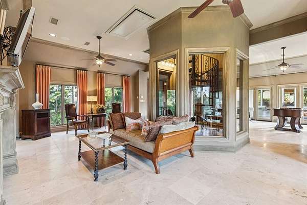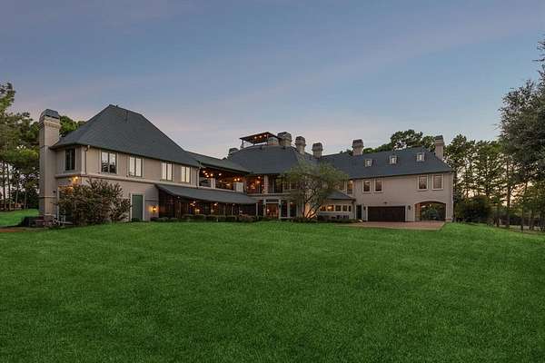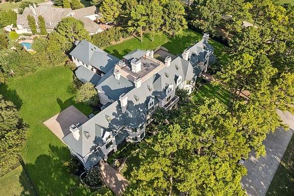A rare offering of uncompromising elegance, this ultra-exclusive estate presents a lifestyle of prestige & refinement on 2 secluded, tree-lined acres in Chateau Du Lac. Beyond the private guard gates, a sweeping arrival sets the stage for grandeur, leading to a palatial residence where every detail reflects timeless artistry & modern indulgence. The grand foyer makes a breathtaking first impression w-a double staircase, glittering chandelier & intricate millwork that whispers of estate-quality craftsmanship. Within, 7 luxurious bdrm suites, provide a sanctuary for both intimate living & lavish entertaining. Formal living dazzles w-two-story windows, a Juliet balcony + a stately fireplace while the chef’s kitchen—a culinary masterpiece w-dual islands, professional-grade appliances, and bespoke cabinetry—caters to both quiet family dinners and grand soirées. The primary suite is nothing short of a private retreat: a fire-warmed sitting area, a spa-inspired bath w-a deep soaking tub + dual vanities, doors to a secluded patio + an expansive boutique-style wardrobe create a haven of indulgence. Entertaining is elevated to an art form w-resort-inspired amenities including a year-round indoor pool & heated spa, an expansive enclosed patio designed to escape the Texas sun, a wine room, a private library + executive study, a billiards lounge w-a wet bar & a state-of-the-art media room. Guests can enjoy private quarters in the full mother-in-law residence complete w-its own kitchen. Outdoors, manicured grounds, grand patios & balconies provide a seamless extension of the living space. An elevator rises to the crown jewel of the estate: a rooftop deck that reveals stunning views offering an unforgettable backdrop for sunset entertainment or starlit gatherings. With 4 stately fireplaces, refined architectural details at every turn & a setting of unmatched privacy, this estate is more than a home—it is a world of its own, crafted for those who command only the finest.