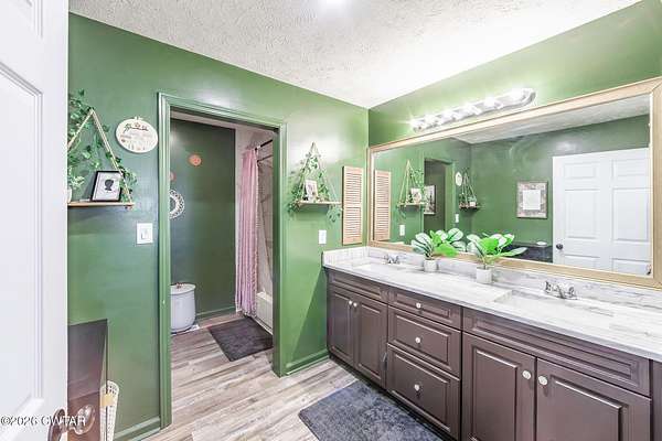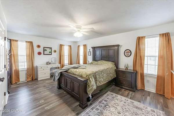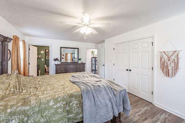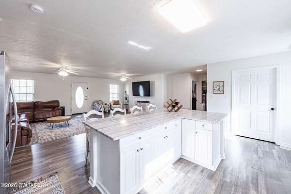 - Ceiling Fan(s), Ceramic Tile Shower, Double Vanity, Kitchen Island, Open Floorplan, Tub Shower Combo, Walk-In Closet(s)