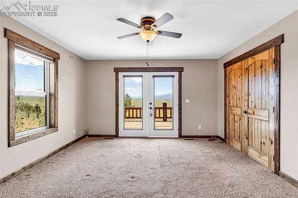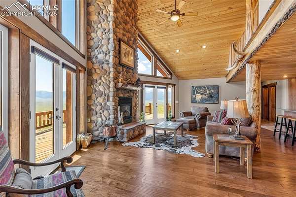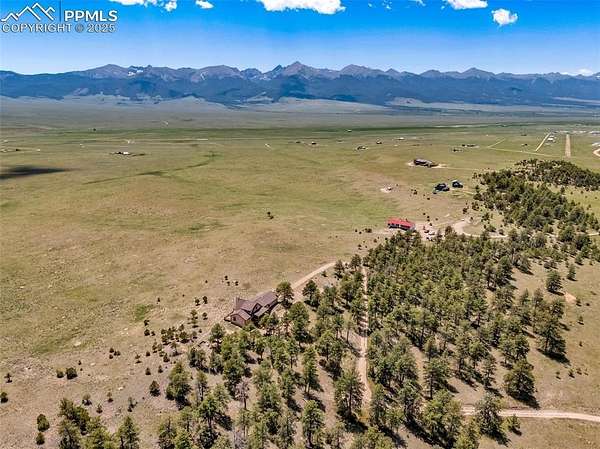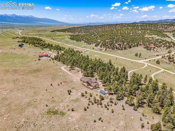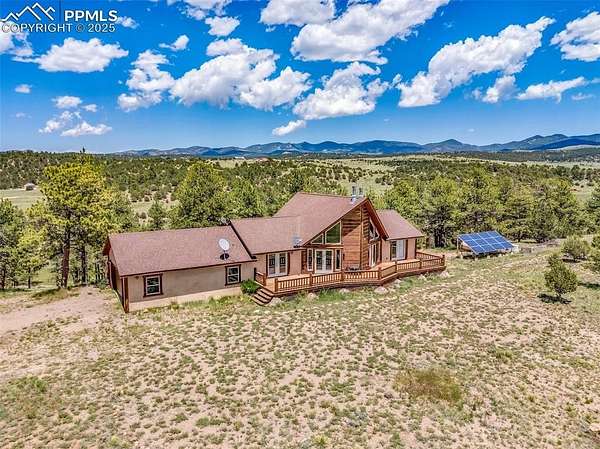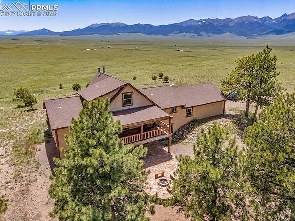 Discover this exceptional custom-built 3-bedroom, 4-bathroom home on 35 private, partially treed acres with breathtaking, unobstructed views of the Sangre de Cristo Mountains. Blending rustic mountain charm with modern comforts, this property offers an ideal retreat for those seeking privacy, natural beauty, and a true Colorado lifestyle. The main level features soaring vaulted ceilings, a dramatic floor-to-ceiling stone fireplace, and expansive windows that flood the home with natural light while framing panoramic mountain views. Live edge wood accents add warmth and character. Two spacious main-level bedrooms include a luxurious primary suite with ensuite bath and deck access - perfect for sunrise coffee or sunset relaxation. The open kitchen offers ample cabinetry, generous prep space, and a layout designed for entertaining. Upstairs, a versatile loft works beautifully as an office, reading nook, or studio. The full walk-out basement provides a massive second living or recreation space, plus a private third bedroom with ensuite bath. Step outside to enjoy a lower patio, elevated deck, and a secluded fire pit area tucked into the trees. With 35 acres, this property offers endless possibilities - from keeping horses to simply enjoying the peace and privacy. Solar power adds energy efficiency, and the location is just minutes from the vibrant mountain town of Westcliffe, known for its shops, restaurants, and Dark Sky stargazing. Experience Colorado mountain living at its finest.
