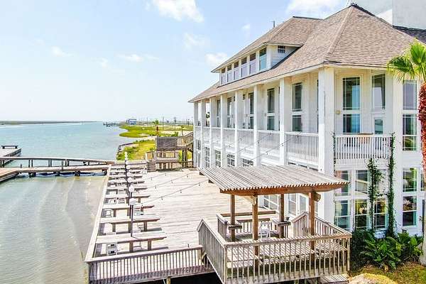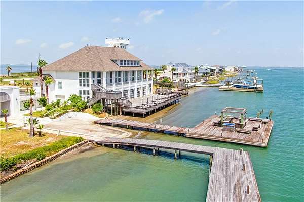 Formerly a celebrated wedding venue and waterfront restaurant, The Seaside Mansion presents an unparalleled opportunity for investors, developers, or anyone seeking an iconic coastal property. This rare offering spans 3.19 acres (per Nueces CAD) across two contiguous lots, with coveted dual zoning-residential and commercial-along the scenic shores of Redfish Bay. The main residence offers 12 bedrooms and 15 baths, including guest suites that once served as groom's and bride's quarters-ideal for groups, retreats, or rental income. Deepwater channel access accommodates 100'+ boats, with a private dock and ramp already in place-perfect for boating, tournaments, or a private marina. With over 3 acres of waterfront, the property delivers flexibility and upside. Whether your vision is a boutique resort, private estate, restaurant, event space, or signature marina, this site is primed for a range of possibilities (buyer to independently verify all intended uses and zoning). Located minutes from the Port Aransas ferry, The Seaside Mansion offers both seclusion and convenience at the gateway to Texas' top coastal destinations. Bring your imagination and transform this landmark into your next trophy asset or legacy home. Imagine the possibilities: a luxury residence, event venue, fish/duck camp, restaurant, or fishing tournament headquarters with its deep-water access and capacity for large vessels. The property includes a boat ramp, extensive dock and pier, and is positioned along a deep-water channel. The first and second floors offer guest quarters for large parties. The second floor includes an expansive, air-conditioned living room, while the first features a banquet hall and commercial-grade kitchen that opens to a sprawling deck overlooking the bay. Buyers to independently verify interior square footage, zoning and usage.