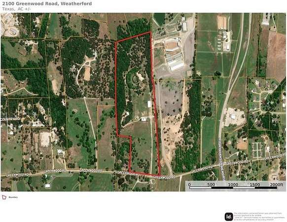 A rare opportunity to purchase approx. 10-acres carved from a larger approx. 49.9-acre assemblage at 2100 Greenwood Rd, Weatherford, TX 76088, known locally as the historic Marvin Savage Farm. This property blends the best of Parker County living with rolling terrain, scattered hardwoods, and open pastureland, all with a gray pipe fence and gated entry at the top of the hill. The approx. 10-acre tract will need to be surveyed from three contiguous parcels owned by the seller to create a versatile homesite with road frontage and multiple potential build locations. Whether your vision is a custom home, barndominium, or equestrian retreat, this tract offers privacy, flexibility, and long-term appeal. The buyer will also receive FIRST OF REFUSAL on the balance of the acreage owned by seller. This arrangement allows you to secure your ideal homesite now while preserving the option to expand later for family, livestock, equestrian facilities, or investment purposes. Location is superb. The property sits atop Greenwood Road, just off the new Ric Williamson Memorial Highway with quick access to I-20, US-180, FM-1187, and Hwy 51. Downtown Weatherford, Aledo and Walsh are minutes away, and Fort Worth is an easy commute. Despite this convenience, the land maintains the quiet character of Parker County countryside. The property is in unincorporated Parker County with no HOA, making it ideal for a wide range of uses. Rural electric is available in the area; water wells and septic systems are common for this corridor. Agricultural valuation may be possible depending on use. This is more than a homesite--it is a chance to own part of a locally recognized farm with history and legacy while securing the option to expand your ownership in the future. Opportunities of this size, quality, and location are increasingly rare in Parker County. Property will need to be surveyed by buyer.