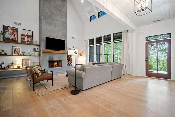 Welcome to this custom built 2020 Modern Farmhouse perfectly set on 2.73 private acres. The 4 bedrooms, 4.5-bathroom home features an open floor plan, spacious bonus room and beautiful hardwoods throughout. The light-filled family room showcases a soaring two-story ceiling. The chef's kitchen includes a walk-in pantry and an office nook with a custom-built in desk. Enjoy peaceful mornings and cozy nights on two covered porches overlooking a level backyard perfect for entertaining, kid fun or a future pool. The 3-car garage offers ample storage with one bay opening at both ends. Behind the backyard woods sits the elementary school-No future development. Style, space and privacy in a move-in-ready home.
