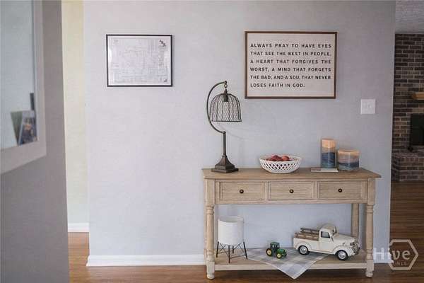 - Breakfast Bar, Butler's Pantry, Double Vanity, Fireplace, Main Level Primary, Pantry, Pull Down Attic Stairs, Tub Shower