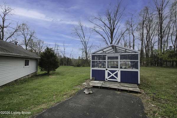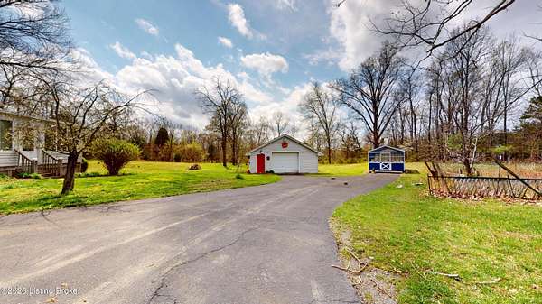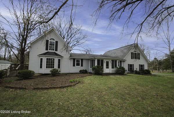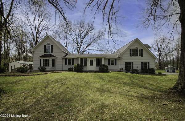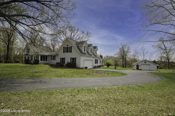 Are you looking for 6 acres of land, privacy, out buildings, a multi-generational home or just room for everyone to spread out in their own space? Look no further! Not only all this but in addition to the attached 2 plus car garage, there are 3 outbuildings with the detached huge garage that has a car lift, 220, air compressor, a/c, and wood burning stove that is a car fanatics dream come true! The house itself is enough to write home about too. 3 areas of the house offer 3 bedrooms with a first floor primary to die for and the other 2 being on opposite sides of the approximately 3800 sq. ft. of living space. You also have a huge kitchen with all brand new appliances, formal dining room, 3 full bathrooms, enclosed sunroom, huge deck, partially finished basement and, and living room with another wood burning stove. The primary is the size of an apartment with a large sitting area, numerous closets and attached bathroom. It also has its own entrance with a handicap ramp. There is nothing small about the laundry room either. Need space for a freezer or extra refrigerator? Got that covered too. The land is very private and flat and already has a greenhouse for you and another 2 outbuildings (in addition to the mechanics dream) to accommodate hobbies or storage or a he/she shed. The owners have done many updates including new paint and flooring throughout. You really must see this fabulous property in desirable Oldham County to appreciate all it has to offer. Horses welcome too! Easy to show and sellers are ready to accept an offer!