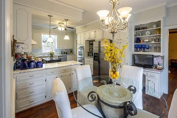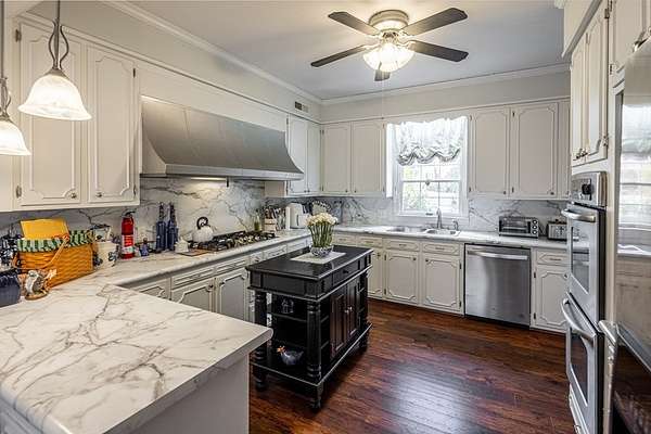 Stately 2 story brick colonial situated on 3 lots totaling 1.53 acres in the desirable San Souci subdivision. Offering a total of 3,669 heated square feet, this spacious home combines classic charm with versatile living areas perfect for today's lifestyle. The main level features a primary bedroom suite, beautiful hardwood floors throughout and a sunroom that provides abundant natural light and the perfect space to relax year round. The chef's kitchen is equipped with a double oven, gas range, and all appliances convey, ideal for entertaining. Upstairs and downstairs living options abound, including a finished basement with separate entrance, perfect for in-law suite or private guest quarters. The basement includes a flex room that could serve as a 4th bedroom, ample additional living space, a wet bar and a second sunroom. Enjoy cozy evenings by either of the 2 fireplaces. Additional highlights: 3 bedrooms, 3.5 baths, double car garage, heat pump (heat & A/C), oil furnace (2026) and floored walk in attic for excellent storage. With its generous lot size, flexible floor plan and timeless brick exterior, this property offers space, comfort and value in a prime South Boston location.