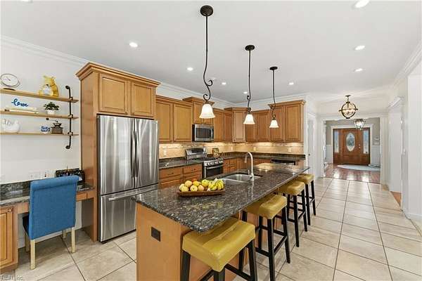 Welcome to this stunning custom-built home set on 3.5 acres in a sought-after Chesapeake location. Offering 5 bedrooms and 3 bathrooms across 3,661 square feet, this home features two spacious living levels designed for both everyday comfort and entertaining. The open layout includes generous counter space, a well-appointed kitchen, surround sound in the main living area, and seamless flow into the dining room and a dedicated office with custom shelving. Step outside to enjoy the in-ground saltwater pool, lush landscaping, and peaceful wooded views that provide a perfect balance of privacy and convenience. Located just minutes from shopping, dining, and major routes near Edinburgh, this property offers a rare combination of space, and custom details. A truly exceptional opportunity in Chesapeake, schedule your private tour today.