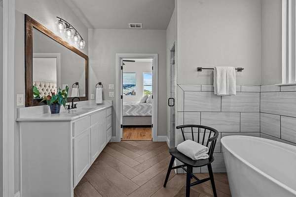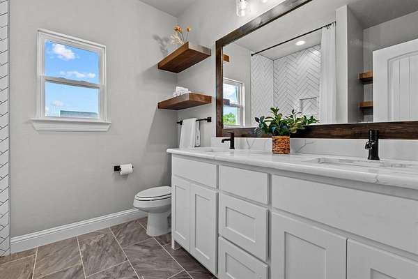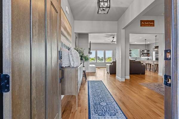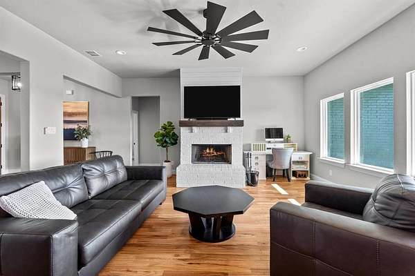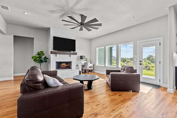 15 minutes from downtown Weatherford you will find the perfect blend of modern luxury and serene rural charm. The grand double front doors open into a spacious and inviting interior, where you'll find stunning hardwood floors throughout the open-concept living areas. The heart of this home is its gourmet kitchen, equipped with a double oven and high-end appliances. The generous layout ensures ample space for cooking and entertaining, seamlessly connecting to the dining and living areas. A upstairs 4th bedroom with en-suite full bath could also make an excellent bonus room or tucked away office. Set on a picturesque 2-acre lot, this property has a heavily treed landscape that provides both privacy and natural beauty. Enjoy the peace of mind with a private well and septic system, and relish the convenience of fiber optic internet for modern connectivity without the restrictions of an HOA. This home is perfect for those seeking a blend of luxury and tranquility in a country setting.