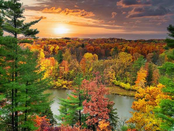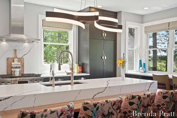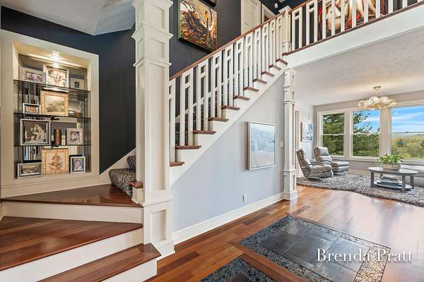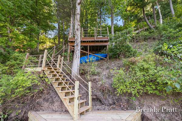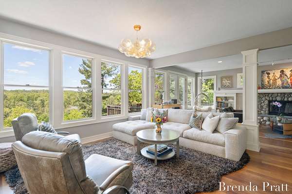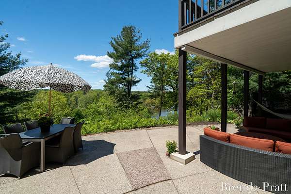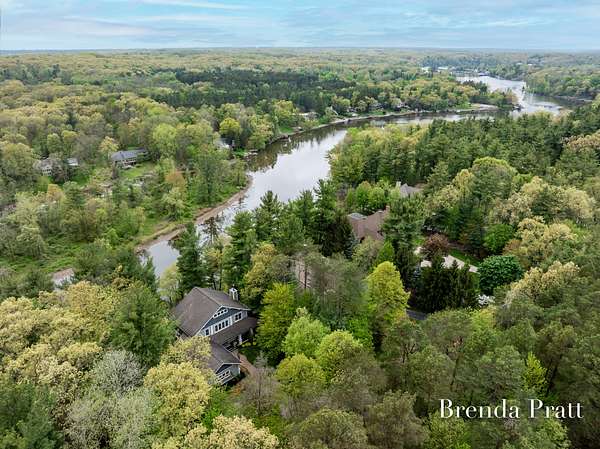 Thornapple River nature lovers retreat with sweeping sunset views from every direction. Expansive wrap around deck with new steps and dock to your private 120 feet of river frontage, a rare blend of privacy, elevation, and panoramic scenery. Newly redesigned kitchen with custom cabinetry, thoughtful layout with elevated finishes at every turn. 4 bedrooms up with a potential for a private office in the lower walk-out. 2 full baths and 2 half with two fireplaces. Stunning primary ensuite with walk in closet complete with upper level laundry. 3 stall attached garage. Perfectly positioned in the coveted Timber Canyon neighborhood, 2.3 miles to downtown Ada and a 20 minute ride to downtown Grand Rapids. Bike or walk to Ada Park and enjoy everything Thornapple River living and Ada Village have to offer.