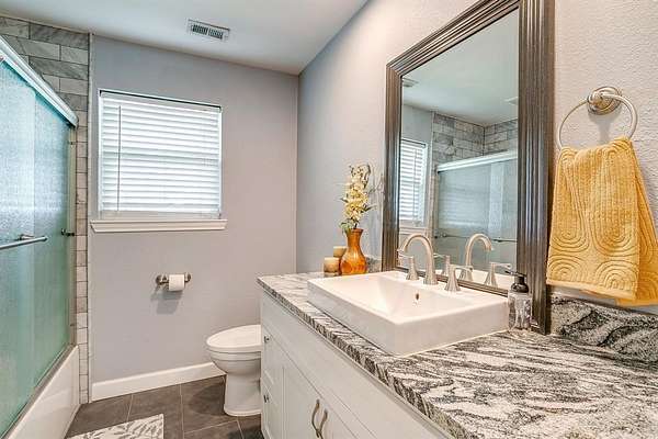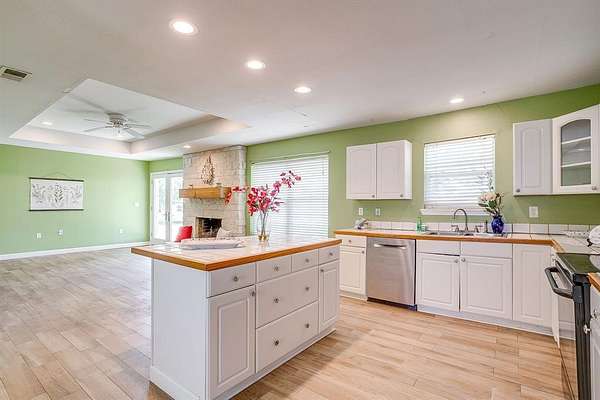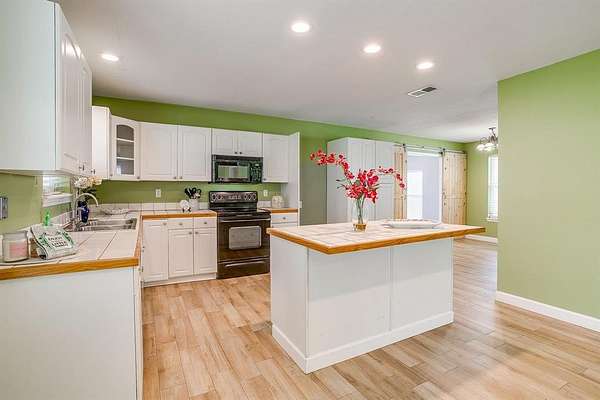 - Decorative Lighting, Granite Counters, Kitchen Island, Open Floorplan, Tile Counters