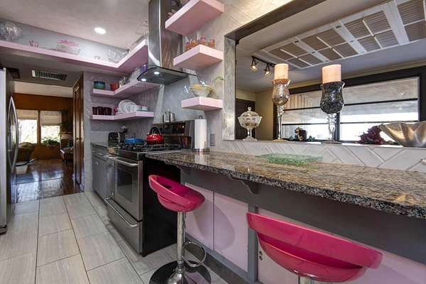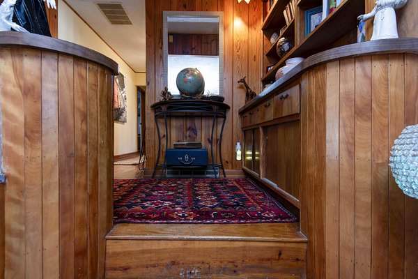 DELIGHTFUL AND CHARMING! This mid century home located in a very convenient southeast Springfield location is ready for a new owner to take the reins. Entertaining with an artist touch was top of mind as the fun aesthetic of this home developed over the years. Located on a DOUBLE lot totaling over AN ACRE this three bedroom, two and half bath home has many wonderful spaces inside and outside. The front porch greets you along with the lovely curb appeal. Step inside to find a large living area with a brick fireplace and hard wood flooring. There are two options for dining areas off of the spacious kitchen that includes a pantry and gas range. Recent updates in the kitchen include granite countertops, tile backsplash and floating shelves. The nook of built in cabinets at the beginning of the hallway is delightful. The primary bedroom and bathroom are inviting. The primary bath features a large tile walk-in shower, double sink vanity and plenty of closet space. Don't miss the basement! Head outside to find a landscaped yard with a covered patio area, two carports, fenced area and a shed with a new roof. Yes! The camper trailer is included! This is one of those homes that you must see in person. Great location with quick access to many different shopping and dining options. Make an appointment to see this property today!