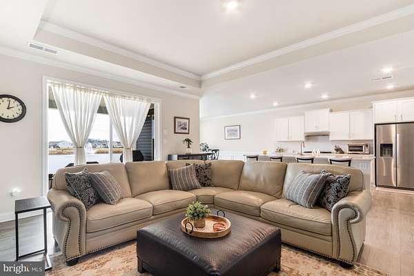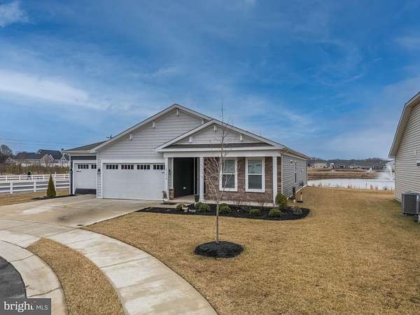 Welcome to 21018 Jenny Ct in Lewes, a spacious and beautifully appointed single-level home offering 3 bedrooms, 3.5 bathrooms, and over 2,448 square feet of thoughtfully designed living space, all set on a scenic pond-view homesite! This expansive ranch-style layout features a highly desirable split-bedroom design, providing privacy and separation between the primary suite and the secondary bedrooms. A dedicated foyer welcomes you inside and opens into an impressive open-concept main living area where the kitchen, dining space, and living room flow seamlessly together, ideal for both everyday living and entertaining. The kitchen offers abundant cabinetry, generous counter space, a large center island with seating, double wall ovens, a walk-in pantry, and direct visibility into both the dining area and living room, creating a true central gathering space within the home. The primary suite is privately positioned and generously sized, complete with two walk-in closets and a spacious en-suite bath featuring dual vanities. The split layout enhances comfort and functionality throughout the home. Each additional bedroom offers substantial dimensions, and notably, this home includes four bathrooms, including a hall bath with tub, a half bath near the laundry area, and a full bath adjacent to the front bedroom, creating an ideal guest or multigenerational living configuration. A separate office/flex room provides versatility for remote work, hobbies, or additional living space, positioned apart from the primary suite for added privacy. The main living area opens directly to a large covered rear patio, offering peaceful water views and an ideal setting for outdoor relaxation or entertaining. The covered front porch adds additional charm and usable exterior space. Offering the ease of single-level living and exceptional water views, this home stands out as one of the best homesites in Headwater Cove. Schedule your private showing today!