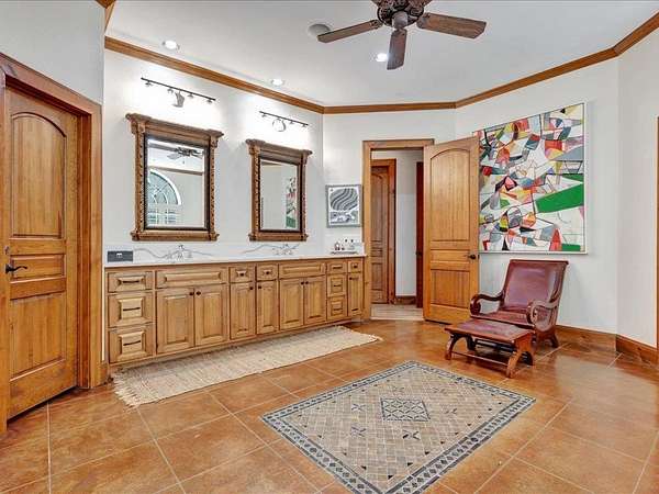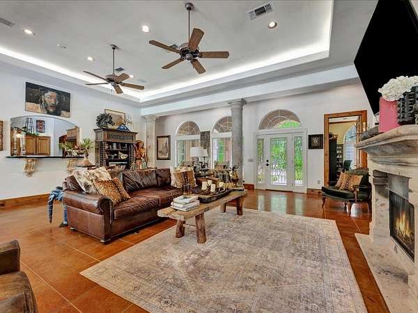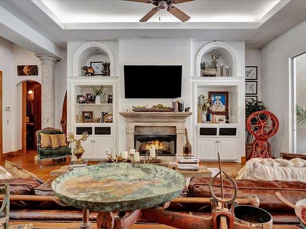 - Alarm System, Bookcases, Boxed Ceiling, Breakfast Bar, Ceiling Fan(s), Fireplace, Gas Fireplace, Indirect Lighting, Island Kitchen, Jetted Tub, Pantry, Raised Ceiling, Smoke Detector, Wet Bar, Woodburning Fireplace