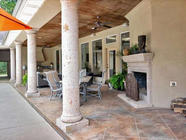 - Covered Front Porch, Covered Patio, Deck, Electric Gate, Fence, Fenced Yard, Gas Grill, Outside Kitchen, Outside Spa, Patio, Pergola, Pool, Porch, Sprinkler
