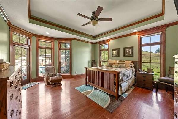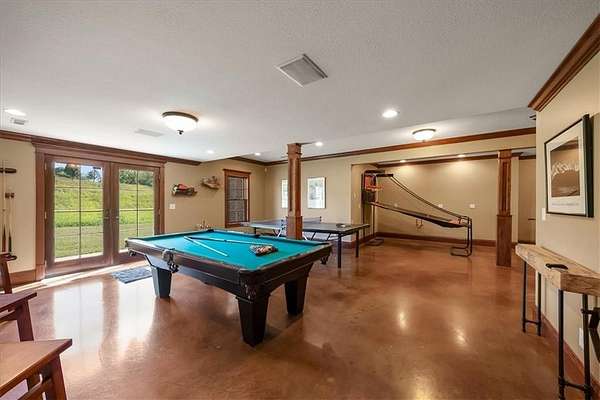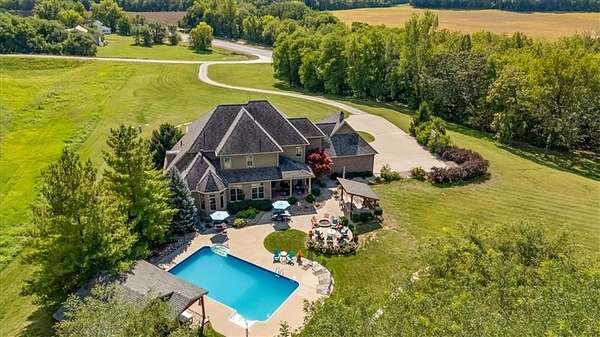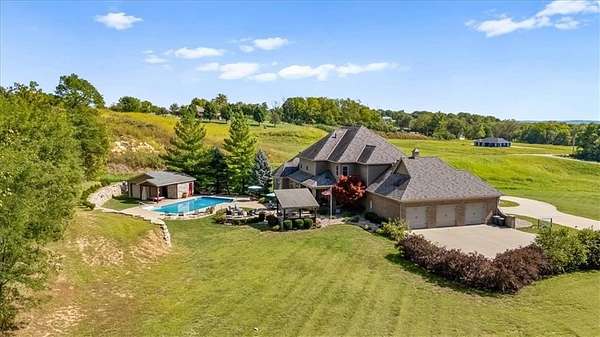 Exquisite Custom Luxury Estate on 10.51 Acres. 13 Miles from Mosaic in St Joseph, MO and 35 miles to MCI Airport. This breathtaking custom-built estate combines timeless craftsmanship with resort-style living. Offering 5 spacious bedrooms and 5.5 spa-inspired baths, this home is designed for both elegance and comfort. The primary suite is a serene retreat featuring a deep Asian soaking tub, walk-in steam shower with heated floors and expansive walk-in closets. Guests are welcomed through solid oak custom doors in soaring ceilings and a dramatic staircase setting the tone for the home's refined style. At the heart of the home, the chef's kitchen boasts old-world style stamped tin ceilings, hand-glazed maple cabinetry, granite countertops, hammered copper sinks, Hazaki ice machine and a spacious walk-in pantry. A formal dining room and inviting living room with fireplace provide the perfect spaces for gatherings. Additional features include a private office, custom main-floor laundry and art room/office. Upstairs, three bedrooms each feature their own en-suite baths, with a flexible bonus space for added versatility. The finished walk-out lower level is designed for entertainment and wellness, offering a media room, private gym and abundant storage. Outdoors, the property transforms into your personal resort with a sparkling, heated pool, pool house with bathroom and garage, outdoor kitchen and bar, expansive patios and a firepit for evening relaxation. Every detail reflects the highest standard of luxury, making this estate the perfect blend of sophistication, comfort and lifestyle!
