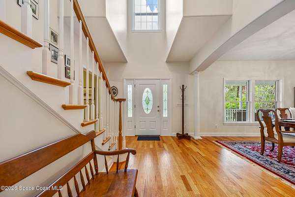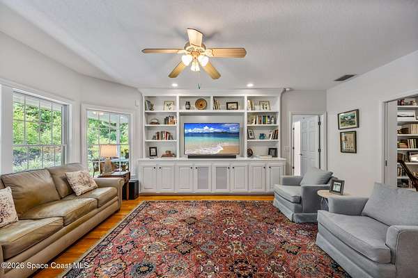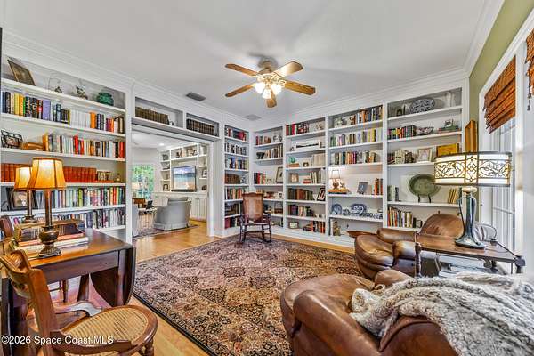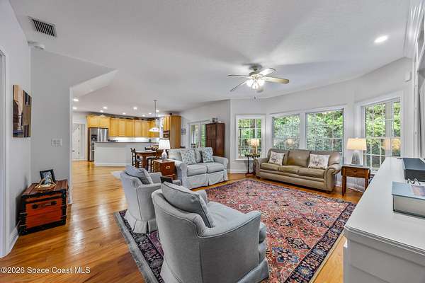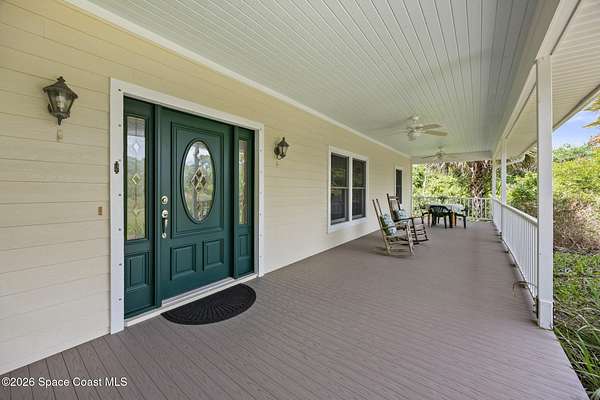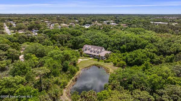 Set on 17.41 acres in the heart of the city, this custom estate offers privacy, space, and timeless Florida charm. A circular drive leads past a private pond to a thoughtfully designed home with 4 bedrooms, office, library, and 3.5 baths. Inside, engineered oak floors, a two-story foyer, and seamless living spaces create an inviting flow. The spacious kitchen features quality appliances, abundant cabinetry, and opens to the family room for easy entertaining. The ground-floor owner's suite includes porch access, a walk-in closet, and a well-appointed bath. Upstairs, two bedrooms share a bright Jack-and-Jill bath. Enjoy expansive covered porches, including a 66' front porch overlooking serene surroundings. Built by Brandon Homes with durable materials and an oversized garage, this property offers a rare blend of convenience and peaceful living.