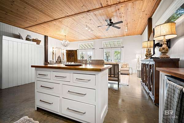 WELCOME to THIS TRULY PICTURESQUE COUNTRY setting and ADORABLE COTTAGE on 6 ACRES!!! just minutes from Downtown Fairhope! If you enjoy PRIVACY, YOU WILL LOVE THIS PROPERTY! Absolutely BEAUTIFUL PROPERTY and charming Newly Renovated Home, New A/C, New Paint (interior & exterior) Updated Cabinets, Double Front Porch Entry Doors, Custom Tile Shower, & updated lighting!. Featuring Mature Oaks and unbelievably relaxing views from the both the front and back patios! Rachel Myers Lane is a private road close to all the conveniences of Fairhope! This cottage offers 1 full bedroom and also an extra room with another Bed that currently serves as a 2nd Bedroom. This cottage is so brilliantly designed, with an OPEN FLOOR PLAN, Beautiful Kitchen with Island, Large Living area and a Dining Area! There is a large Laundry Room that also serves as a closet for extra bonus room that serves as a 2nd Bedroom! It is DECORATED LIKE SOMETHING OUT OF A MAGAZINE....and all furnishings and decor is negotiable ! The Back Patio is just so peaceful and perfect for sipping your morning coffee or enjoying a beautiful sunset overlooking the Sprawling Oaks and rolling property! And most likely you will see Deer roaming through the trees! Ideal for your Personal Home or build another home on the Beautiful acreage out back and keep this cottage for an AirBNB! Large outside Storage closet and Pole Barn! Bring your HORSES, CHICKENS, BOATS, and/or R.V. Endless possibilities!!! No HOA! Do not miss this opportunity. It is a one of a kind property in this area for sure!!! IT IS ONE OF MY FAVORITE PROPERTIES EVER!!! Call today for your private showing! Buyer to verify all information during due diligence.