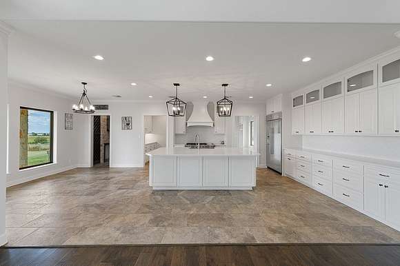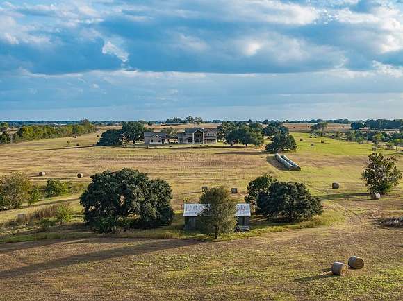 This stunning 56.115 acre property features an impressive 5,558 square foot home nestled in the community of Holman located between Weimar and La Grange Texas. This exquisite two-story home boasts four spacious bedrooms and a striking stone exterior, blending elegance with durability. The living areas are bright and airy, thanks to large windows that invite natural light and offer picturesque views of the expansive landscape. The gourmet kitchen is equipped with high-end appliances, perfect for culinary enthusiasts, and flows seamlessly into the dining and living spaces, making it ideal for entertaining. The four bedrooms are generously sized, with the master suite serving as a luxurious sanctuary complete with an en-suite bathroom that features modern fixtures and finishes. A dedicated media room is perfect for movie nights or entertaining guests. The oversized three-car garage includes a guest space with an en-suite, ensuring that visitors have their own comfortable accommodations.