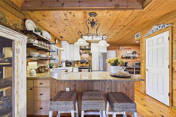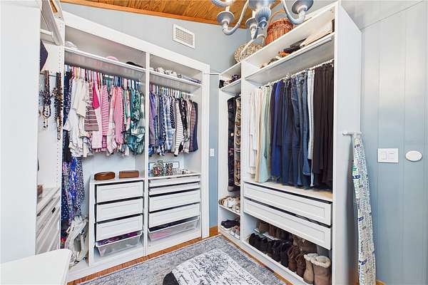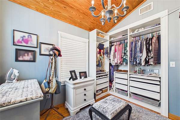 - Cathedral Ceiling(s), Ceiling Fans(s), High Ceilings, Open Floorplan, Solid Surface Counters, Solid Wood Cabinets, Thermostat, Vaulted Ceiling(s), Walk-In Closet(s)