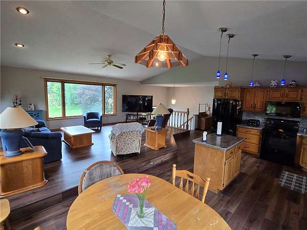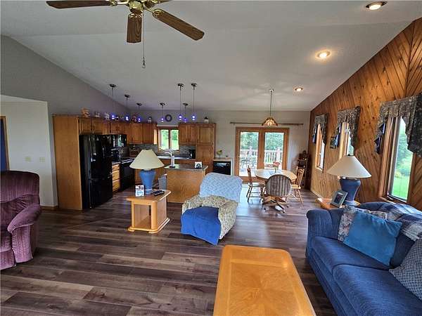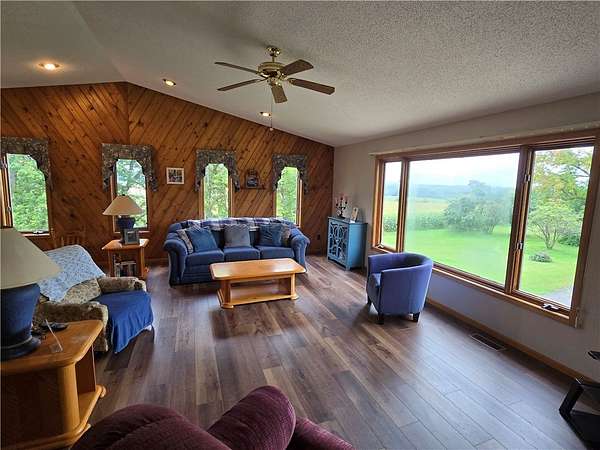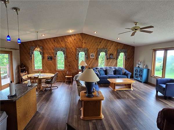 Nestled among the rolling hills just outside Chetek, this 3 bedroom, 2 bathroom home offers the perfect blend of privacy, space, and country charm. Built in 1991 with timeless redwood siding, the home is set on 11 acres, complete with trails for exploring, hunting, or simply enjoying the peace of nature. Imagine sipping your morning coffee on the large back deck or by the picture window while soaking in sweeping countryside views. Practical updates give peace of mind, including a new roof in 2014, added insulation in 2019, a hot water heater in 2021, a furnace in 2024, and fresh main floor flooring in 2025. The property is also set up for an outdoor wood burner, giving you energy saving options for the colder months. A spacious 28x48 pole shed with a 12x16 lean-to offers all the storage you'll ever need for toys, tools, or hobbies. Whether you dream of a hobby farm, outdoor adventures, or just a quiet retreat, this property delivers more than most in the Chetek area.