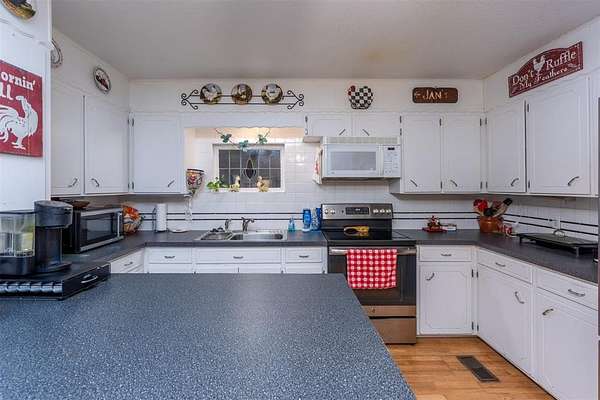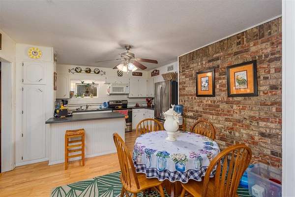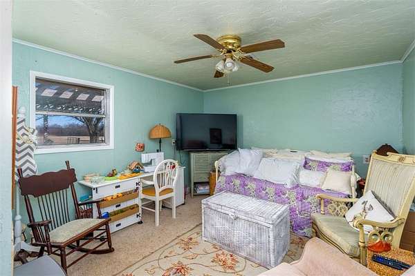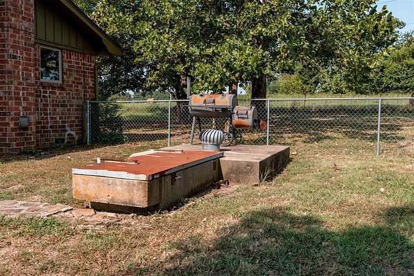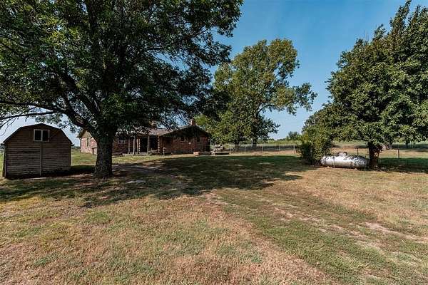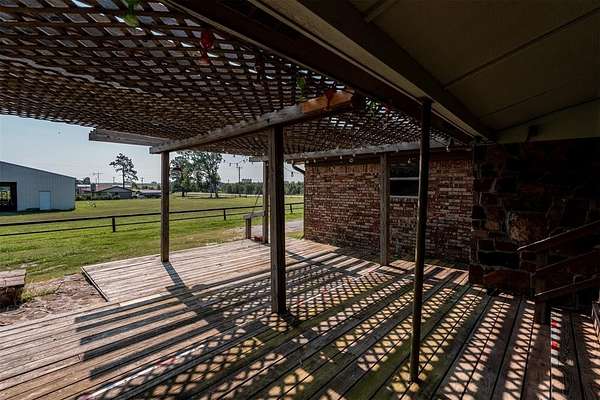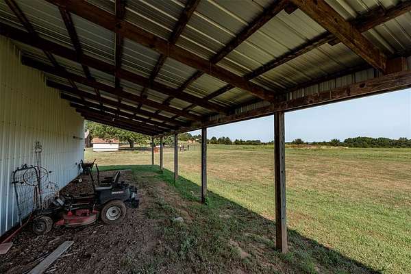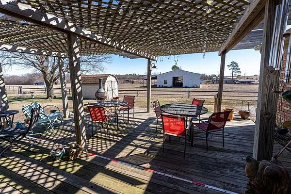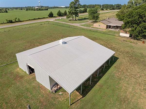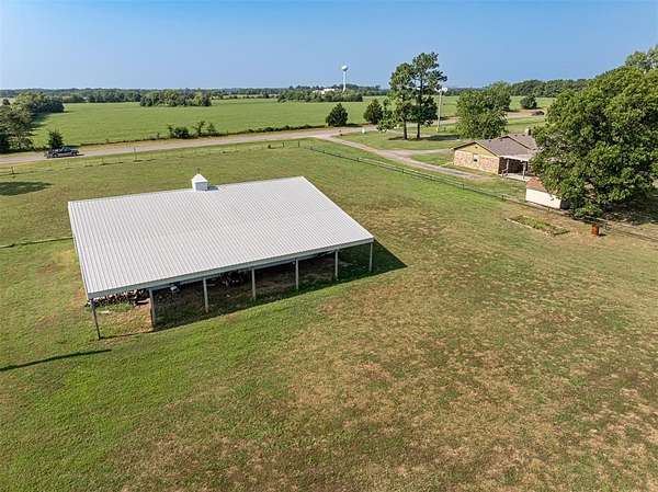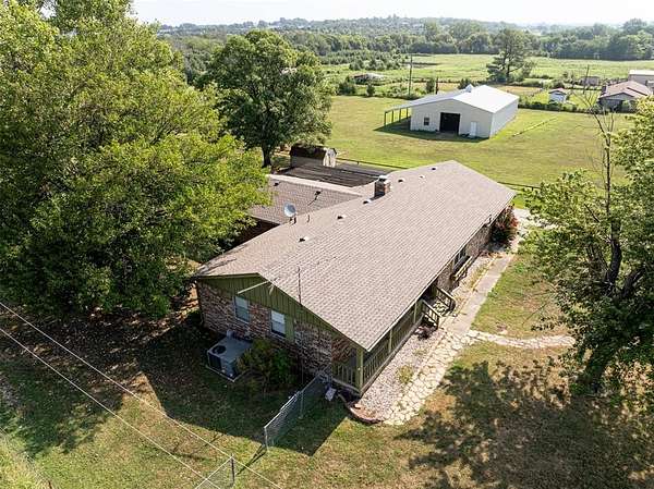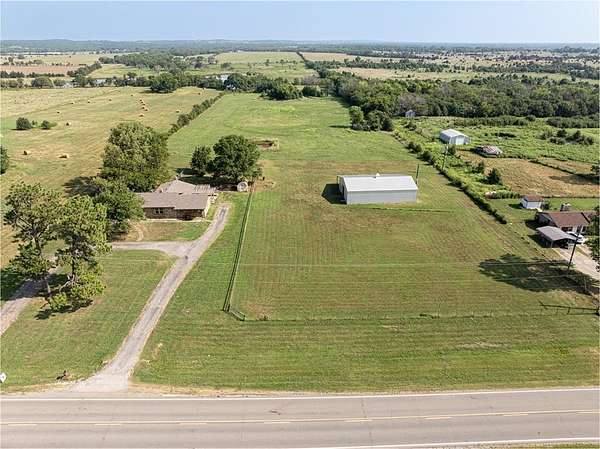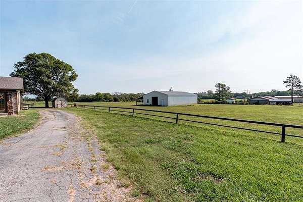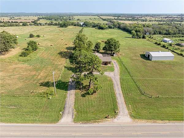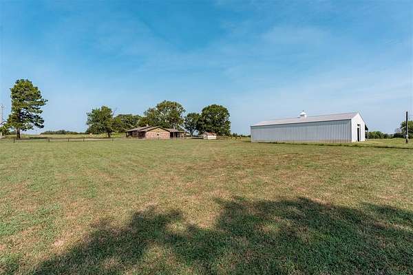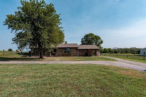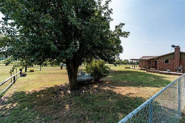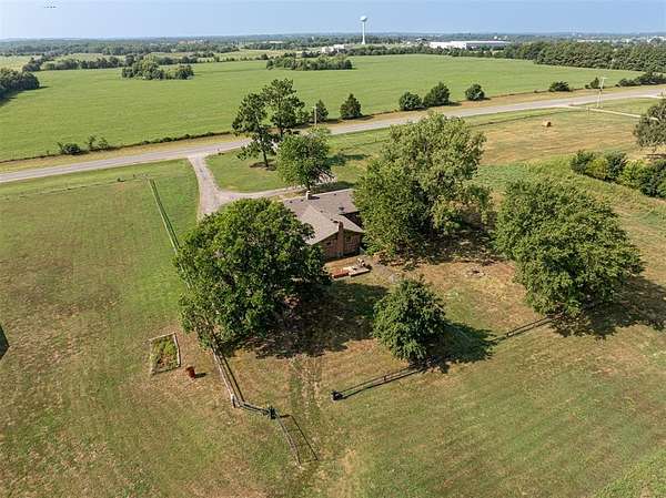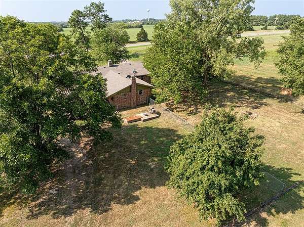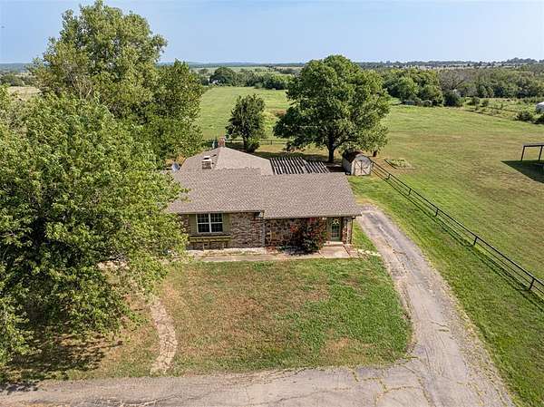 Seller is offering a $5,000 flooring allowance! Located just two minutes from Okemah, this spacious 5-bedroom, 2-bath brick home sits on 10 highly-productive acres m/l with two ponds --perfect for livestock, hay production, or hobby farm. Inside, you'll find two large living areas-one was previously used for formal dining, including a sunken den with a cozy fireplace, newer vinyl windows, and patio doors that lead directly out to the covered pergola and deck--ideal for indoor-outdoor living and entertaining. The den also has an updated bathroom with good-size tiled-in shower. The home is supplied with PSO electric, rural water, propane and features a newer Lennox HVAC system. A BRAND-NEW GAF Timberline HDZ 30-year architectural shingle roof was installed on July 29th, offering lasting durability, savings, and peace of mind. The 40x60 barn is equipped with electric and includes a 60x15 lean-to, providing ample space for equipment or livestock. An asphalt circle drive and all-paved road access make the property easily accessible. Additional features include a storm cellar and back yard views of your highly-productive acreage and barn. Whether you're looking for space to spread out, raise animals, or simply enjoy the quiet of country living close to town--this property delivers. Centrally located between Oklahoma City and Tulsa with easy access to Interstate 40.