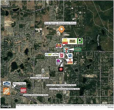 Est $6,570/moThis 3.5 +- acre site offers an excellent opportunity to develop retail or commercial projects at a high traffic location in Apopka. The size of the site provides a large range of project options from retail strip center or a mixed-use center. Many other traffic generator uses are nearby - Publix, McDonald's, Subway, Walgreens, etc. Both Rock Springs Rd and Lester Rd offer easy access to the Wekiva Parkway (SR 429).