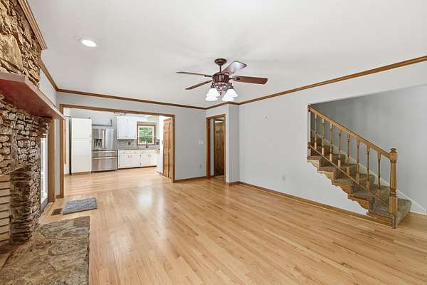 Country charm with city convenience! Charming rustic retreat featuring natural stone exterior paired with western cedar accents. Nestled among mature trees on an expansive 1.72 acre lot, the home has a timeless, lodge-inspired feel that blends seamlessly with its wooded setting. Offering 3 bedrooms 3 1/2 baths, basement mother-in-law or teen suite with new flooring, Amish hand-cut oak flooring, remodeled kitchen and bathrooms, new HVAC units, new windows. Outside you'll find a 20x25 shop, puttering/garden shed, 3 driveways, fenced backyard, 3 water features, trex decking, hand picked stone walkways. Located only 1/2 mile from Maury Regional Hospital, shopping and dining !
