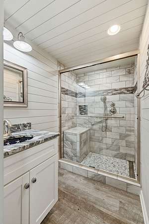 - Stone, Wood Siding